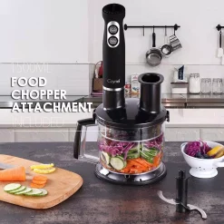 - 6-in-1 multi-purpose: the removable blending arm, whisk attachment, potato masher and chopper lid are engineered for a super easy interchanging with a simple spin to lock or release