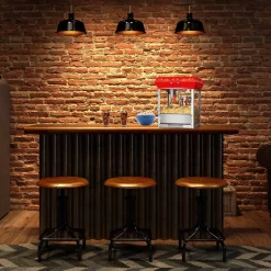 If you are in the market for a popcorn popper, stop looking. These Great Northern Popcorn top quality machines feature stainless steel food-zones, easy cleaning stainless steel kettles, old-maid drawers (for unpopped kernels), tempered safety glass panels and an industry leading 6 ounce kettle. The antique style design evokes memories of early days at the ball games, carnivals or the movie theater. We have combined the best of both worlds β not only are you getting todayβs technology, you get an authentic design with all the conveniences of the modern era. BONUS. We include FREE 3 plastic serving cups, 25 popcorn serving bags, measuring cups and a popcorn scoop with every popper. Features: Deluxe model with 2 control switches and 560 watts. Exclusive whisper quiet motor. Switches include: spot light warmer, stirrer/pot heater. Tempered Safety Glass Walls. High impact Polycarbonate doors. Warming Deck. Built-in warmer light. Popcorn scoop is included. Reject kernel tray. Kernel and oil scoop is included. Heavy-duty powder coated steel and stainless steel construction. Cleans up with water. Makes roughly 2 gallons of popcorn per batch. Works on standard 110 volt. 560 watts (Top Quality and Certified). Machine is 17.1 L x 14.1 W x 20.8 H inches. Weight: 29 lbs. Minor assembly is required.