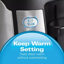 - Optional keep warm setting β toast stays warm for an extra 3-minutes in slots
