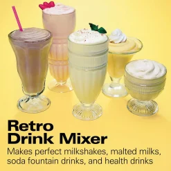 Recreate the days when thick, milkshakes ruled and the best drinks in town came from a soda fountain. Its easy with the Hamilton Beach Drink Master Chrome Classic. With 2-speeds and a Tilt table mixing head, chocolate malts, vanilla shakes or soda fountain drinks can be enjoyed at home by the whole family. And the best part is everyone can pick their own mix-ins. Start with ice cream and some milk and then add anything from pineapple and coconut to cookies or pieces of your favorite candy bar. The 28 oz. stainless steel mixing cup gives you plenty of room to create a delicious treat. The 2-speeds let you blend and mix to create the perfect texture. When finished, the detachable spindle removes easily for cleanup. Make family night a little sweeter with the Hamilton Beach Drink Master Chrome Classic now thatβs Good Thinking.