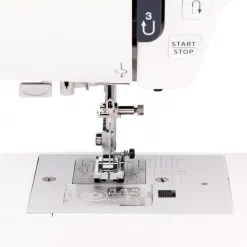 The Janome JW8100 computerized sewing machine is the perfect machine to tackle your next sewing project. The machines cutting-edge technology ensure that projects are conquered with power, precision and confidence. Utilize the Janome JW8100sewing machines built-in needle threader, presser foot lift, auto-declutch bobbin winder and 7 mm stitch width. The backlit LCD screen with easy navigation buttons make choosing stitches a breeze. The Easy Convenience buttons are located right by the needle, youβll find a start/stop button for sewing without the foot control and a reverse button. There is also a locking stitch button and needle up/down button. The Janome JW8100 advanced sewing machine features basic technology that is perfect for the starting DIY sawist, but can handle a variety of tasks demanded from an experienced user. Bonus Accessories like the Extra-Wide Extension Table, Hard Cover, Even Feed Foot and Quarter Inch Foot provide you with a great value bundle.