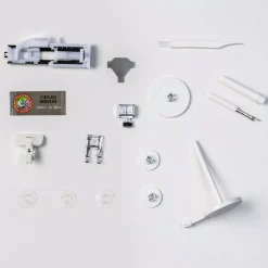 - Standard included accessories: General purpose foot (on machine), zipper foot, satin stitch foot, automatic buttonhole foot, spool holders (large and small), extra spool pin, bobbins (class 15), assorted needle set, seam ripper / buttonhole opener, lint brush, screwdriver, stitch chart, instruction book, foot control, power cable