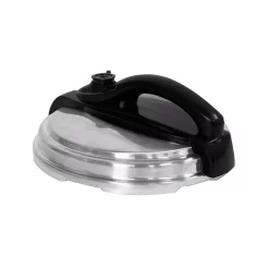 - Built-in safety features include pressure control, safety locking lid, carry handle and non-slip rubber feet