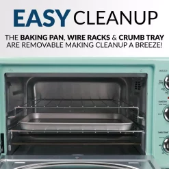 - Easy clean up: as if cooking isnβt easy enough, the baking pan, wire racks and crumb tray are removable, making cleanup a breeze