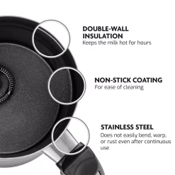 - Keep Your Beverages Temperature Locked β Features a double-wall stainless steel interior that ensures the milk stays hot or warm inside for hours while the exterior remains always cool to touch.