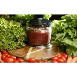 - Comes with BPA-free and dishwasher safe attachments: food chopper, stainless steel mixing stick, stainless steel egg whisk, and 20.3 oz. beaker with cup measurements