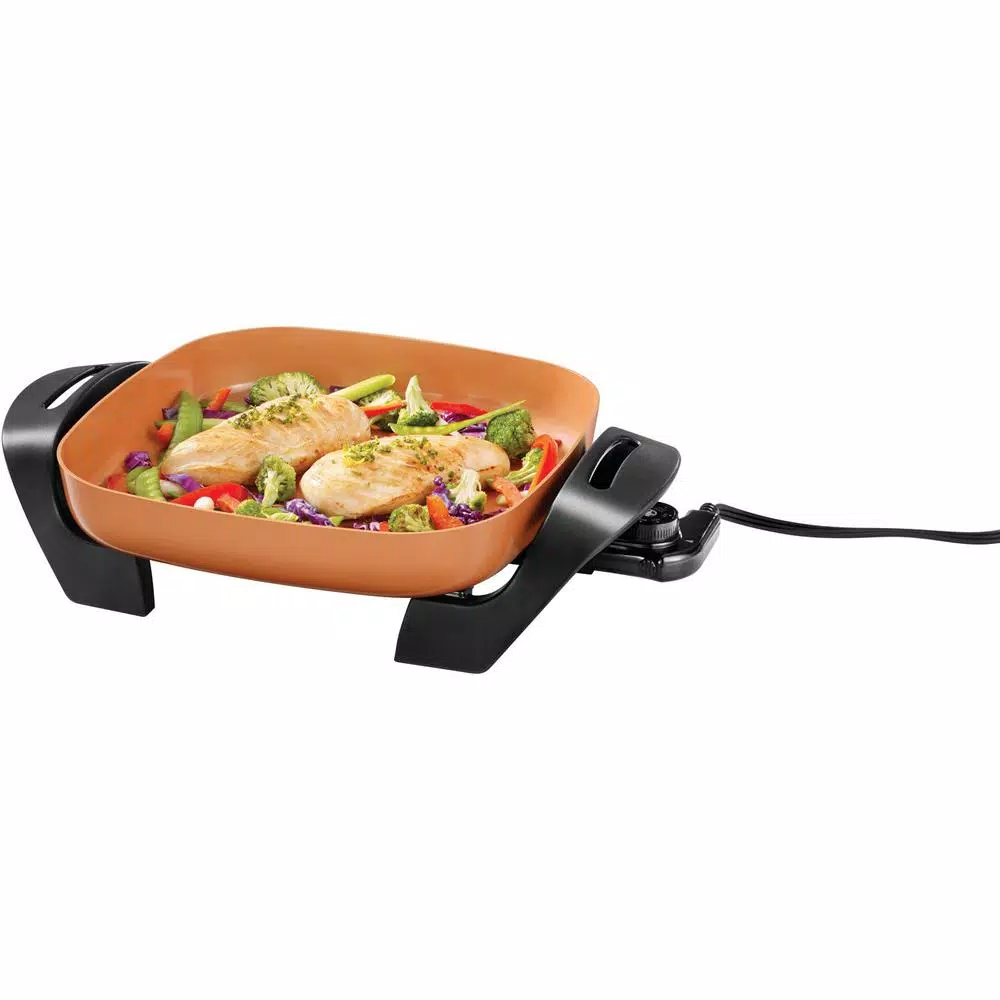 An electric skillet can be very useful when your stovetop is already occupied or when you want to save on energy when cooking your meals! This Starfrit Eco Copper Electric Skillet has a nonstick ceramic coating thatβs 100% natural and does not contain harmful chemicals-no PFOA. You will love its versatility and itβs easy to clean!